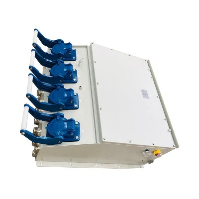 - صندوق اتصال الشاطئ: تقع هذه الخزانة على الرصيف، وتحتوي على قواطع الدائرة والمقابس ومعدات المراقبة.